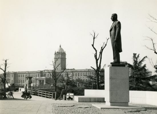 関一銅像と大阪高裁遠望
