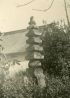 鉄眼寺(封筒入) 石をつんだ鉄眼寺の門戦禍を今にとどめている。黒焼のような大木の前にお稲荷がチョコナンとある